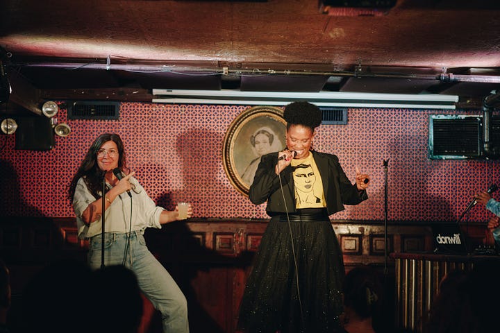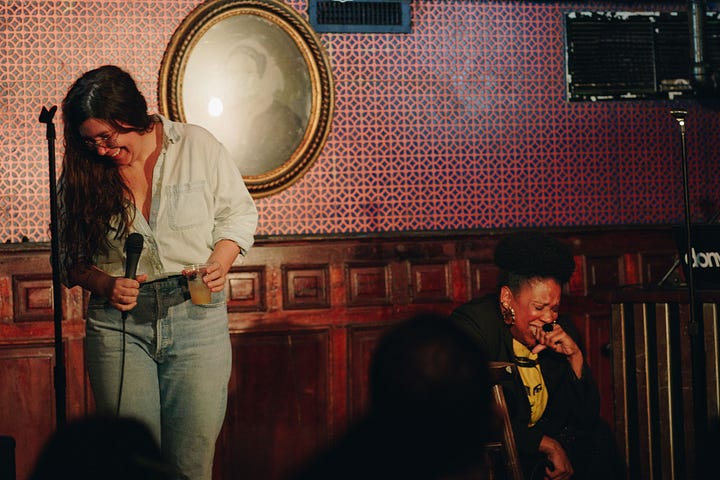 I’ve said it before, but I love just hanging at our show even if it’s not my hosting week. Me, Josh, Joyelle, and Tyrone rotate who hosts when just based on schedules. But when I’m not up, I’m genuinely excited to go and just hang in the back with whoever else is off that week and drink and laugh with everyone else. It’s a delight to just perch at one of the reserved back bar stools and order our show’s signature drink. Yes, we have a signature drink. No, it isn’t on the menu or anything (...yet). But Tyrone kindly introduced us all to a perfect mixed drink: mezcal and ginger beer. It’s seasonless, it’s delicious, it’s a perfect beverage to have one or two of before switching to a Union Hall staple like a Narragansett tallboy. Our friend and resident DJ Donwill keeps the vibes super fun from doors until everyone files upstairs. Our producer Jordan books reliably funny but also nice and cool comics who when they can, tend to hang and not just jet off to another spot. And of course, the other hosts are the best around.